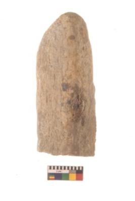 | Description / विवरण | specimen of oval shaped polisher with triangular cross section. It is made of sandstone. It is having smooth surface ehreas other side is rough . |