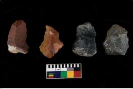 | Description / विवरण | Specimen of a cores with several broad fluted marks and some of them are tapering at one end. |