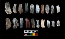 | Description / विवरण | There are n 20 microliths. All blades have retouched sides. Some are tapering at one end. Some have flat base and some are pointed. |