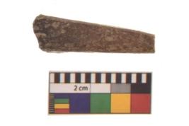 | Description / विवरण | Specimen of a polished bone point made on long bone, it has pointed top, It is rectangular cross section in shape with flat and thick body. |