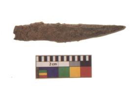 | Description / विवरण | Specimen of a polished bone point made on long bone, it has pointed top |