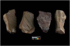 | Description / विवरण | There are n 04 objects; they can be characterised as blade cores, blade removing marks are seen, two of them have flat base, they have sharp edges. |