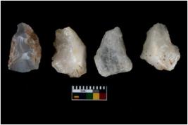 | Description / विवरण | There are n 4 flake cores. All of them are fully fluted flake cores without any trace of crested ridge flakes. Few are tapering at one end and some of them have sharp edges. |