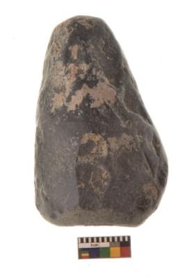 | Description / विवरण | Specimen of triangular shaped Axe with lenticular section and pointed butt. It is under side flat and upper slightly bulging out. It is having blunt edge. |