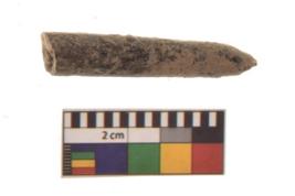 | Description / विवरण | Specimen of a polished bone point made on long bone, it has sharp pointed top, It is rounded cross section. Q |