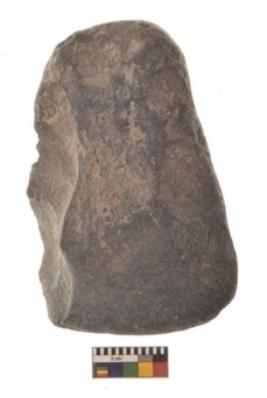 | Description / विवरण | Specimen of triangular shaped Axe with lenticular section and pointed butt. It is under side flat and upper slightly bulging out. |
