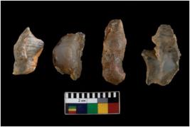 | Description / विवरण | There are n -4 of utilized worked cores and have multidirectional irregular scar pattern. They have sharp edges and three have broken tip. |