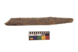 | Description / विवरण | Specimen of a polished bone point made on long bone, it has sharp pointed top, It is rectangular cross section. |