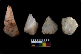 | Description / विवरण | There are n 4 flake cores. All of them are fully fluted flake cores without any trace of crested ridge flakes. Few are tapering at one end and some of them have rounded edges. |