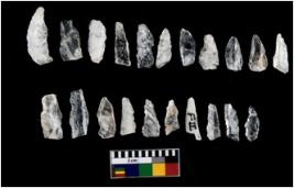 | Description / विवरण | There are n 20 21 microliths. All blades have retouched sides. Most of them are broad at base and narrow on top. Some are tapering. Some have flat and round base. |