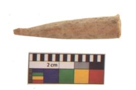| Description / विवरण | Specimen of a polished bone point made on long bone, it has sharp pointed top, It is rounded cross section. |
