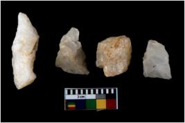 | Description / विवरण | There are n 4 flake cores. All of them are fully fluted flake cores without any trace of crested ridge flakes. Few are tapering at one end and some of them have sharp edges. |