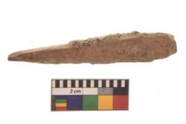 | Description / विवरण | Specimen of a polished bone point made on long bone, it has pointed top, It is rectangular cross section |
