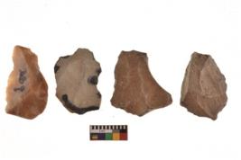 | Description / विवरण | There are n 4 cores; there are multidirectional irregular scar pattern on them. The reverse bulb and platform can be seen. |