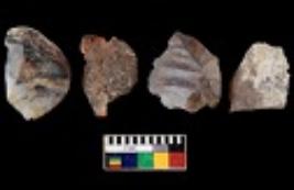 | Description / विवरण | There are n 4 utilized flake cores. There are multi directional irregular scar pattern on them. Two are tapering at one end and two have sharp edges. |