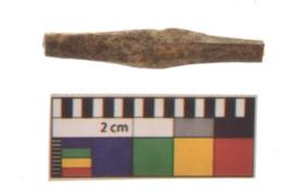 | Description / विवरण | Specimen of a polished bone point made on long bone, it has blunt pointed both side. |