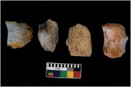 | Description / विवरण | There are n 4 of utilized worked cores and show dominant scar pattern on the dorsal and ventral sides. One has a flat base while one has a round base. |