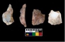 | Description / विवरण | There are n 4 utilized flake cores. Out of them three are made up of Chalcedony and one is made up of Agate. There are multi directional irregular scar pattern on them. One has sharp edge and three have blunted edges. |