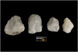 | Description / विवरण | There are n 4 flake cores. All of them are fully fluted flake cores without any trace of crested ridge flakes. One is tapering at one end and few have blunted edges. |