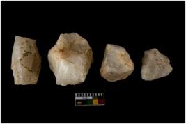 | Description / विवरण | Specimen of fluted cores having several broad fluted marks indicating the detached blades from it. |