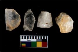 | Description / विवरण | There are n 4 flake cores. All of them are fully fluted flake cores without any trace of crested ridge flakes. Some of them have sharp edges whereas few have tapering edges. |
