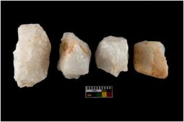 | Description / विवरण | Specimen of fluted cores having several broad fluted marks indicating the detached blades from it. |