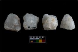 | Description / विवरण | Specimen of fluted cores having several broad fluted marks indicating the detached blades from it. |