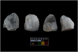 | Description / विवरण | Specimen of fluted cores having several broad fluted marks indicating the detached blades from it. |