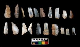 | Description / विवरण | There are n-20 microliths. They are irregular in shape, have pointed edges. Few have flat base. Few of them ar sligthly curved from one side. Few have tapering side. |