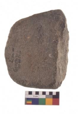 | Description / विवरण | Specimen of an oval shaped rubber stone with rectangular section and concave end. |