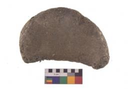 | Description / विवरण | Specimen of an oval shaped rubber stone with rectangular section and concave end. |