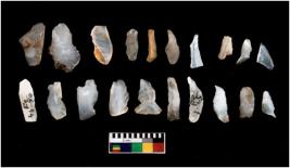| Description / विवरण | There are n-20 microliths. They are irregular in shape. Some of them have flat base and blunt edges. Few of them are pointed. Tapering appears on few. |