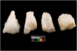| Description / विवरण | Cores, with several broad fluted marks from almost all the sides indicating the detached blades from it. |