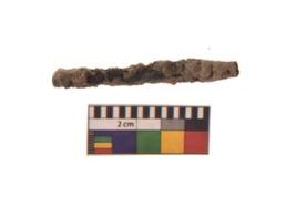 | Description / विवरण | A long nail with pointed functional bottom end and round slightly projected top with loop shaped. It is broken Piece with highly corroded in present condition. |