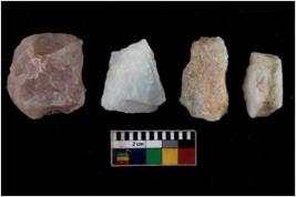 | Description / विवरण | Specimen of a cores with several broad fluted marks and some of them are tapering at one end. |