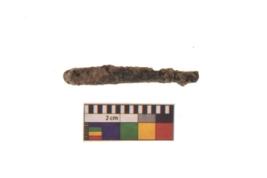 | Description / विवरण | A long nail with pointed functional bottom end and round slightly projected top. It is broken Piece with highly corroded in present condition. |