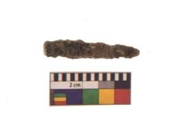 | Description / विवरण | A long nail with pointed functional bottom end and round slightly projected top with loop shaped. It is broken Piece with highly corroded in present condition. |