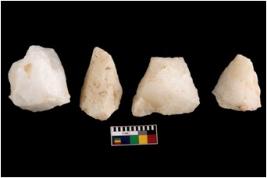 | Description / विवरण | Cores, with several broad fluted marks from almost all the sides indicating the detached blades from it. |