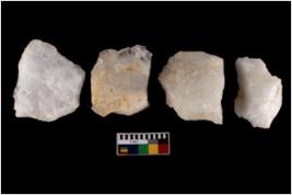 | Description / विवरण | Cores, with several broad fluted marks from almost all the sides indicating the detached blades from it. |