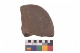| Description / विवरण | Specimen of an oval shaped rubber stone with rectangular section and concave end. |