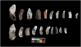 | Description / विवरण | There are n-20 microliths. Most of the microliths have pointed edges and flat base. Tapering can be seen on most of them. Few are curvy form one side. |