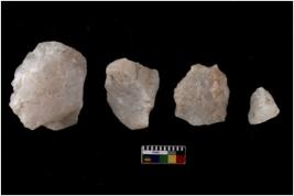 | Description / विवरण | There are n 4 cores; there are multidirectional irregular scar pattern on them. The reverse bulb and platform can be seen. |