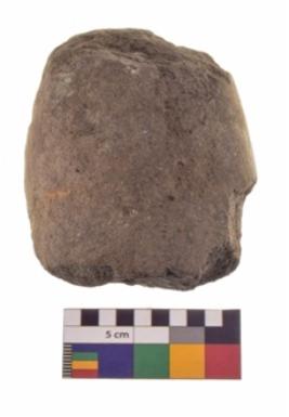 | Description / विवरण | Specimen of an oval shaped rubber stone with rectangular section and concave end. |