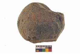 | Description / विवरण | Specimen of a roughly rounded shaped hammer stone with battered surface. |