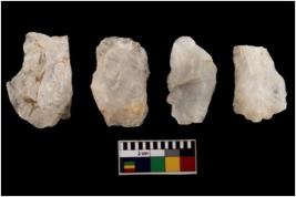 | Description / विवरण | Cores, with several broad fluted marks from almost all the sides indicating the detached blades from it. |
