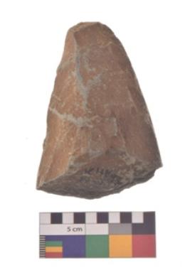 | Description / विवरण | Specimen of triangular shaped Axe with lenticular section and pointed butt. It is under side flat and upper slightly bulging out. |