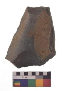 | Description / विवरण | Specimen of triangular shaped polished Axe with lenticular section and pointed butt. It is under side flat and upper slightly bulging out. |