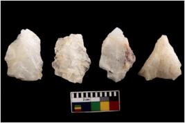 | Description / विवरण | Cores, with several broad fluted marks from almost all the sides indicating the detached blades from it. |