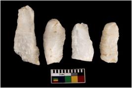 | Description / विवरण | There are n 4 flake cores. All of them are fully fluted flake cores without any trace of crested ridge flakes. Some have blunted edges and some have round edges. Few have flat base. |