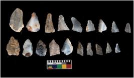 | Description / विवरण | There are n-20 microliths. Some of them have flat base and pin pointed edge. From base blades are broad and narrow at the top. Tapering can be seen. |